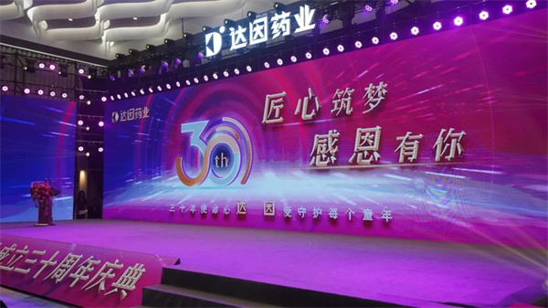 跑步不僅是一種運動方式,更是對生活的熱愛,健康的追求,美好的向往,在“慶典健康跑”之前,達因一直以來持續(xù)舉辦和贊助各項運動類活動,咕咚APP“小葫蘆歡樂跑”、“因為有你伴我成長”小葫蘆接力跑、達因杯-英雄少年營戈壁徒步、冠名“榮成馬拉松”等,公司內(nèi)部也發(fā)起了2024全年跑步打卡活動,倡導健康生活方式的同時,也希望通過“科學營養(yǎng)+合理運動”的理念促進兒童青少年的身心健康發(fā)展,少年強則國強,達因希望通過運動類活動的挑戰(zhàn)和洗禮, 讓孩子們收獲健康快樂,鍛煉毅力激發(fā)無限潛能,為一生健康奠定堅實基礎。 PART02達因30周年慶典:榮耀與汗水交織,輝煌與堅守同行 達因藥業(yè)30周年慶典分為三個篇章進行,第一篇章“輝煌30年 奮進筑新篇”在莊重而熱烈的氛圍中拉開序幕,榮成市委副書記市長鄭躍文、華特集團黨委書記達因藥業(yè)董事長朱效平、中國醫(yī)藥企業(yè)管理協(xié)會執(zhí)行會長吳海東、山東省醫(yī)藥行業(yè)協(xié)會名譽會長賀端湜等領導嘉賓出席盛典并發(fā)表致辭,為達因30周年送上美好祝福,對達因藥業(yè)30年來取得的輝煌成就表示熱烈祝賀,并高度贊揚了達因為推動地方經(jīng)濟發(fā)展、提升兒童健康水平所做出的積極貢獻。達因藥業(yè)不僅是榮成的驕傲,更是兒童健康領域的一張亮麗名片,期待達因在未來為兒童研發(fā)出更多的優(yōu)質(zhì)產(chǎn)品,引領兒童大健康領域的高質(zhì)量發(fā)展。