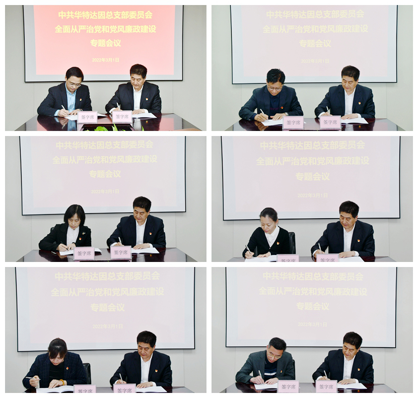 會(huì)議簽訂了2022年度落實(shí)全面從嚴(yán)治黨主體責(zé)任書(shū)、落實(shí)黨建工作責(zé)任書(shū)、落實(shí)全面從嚴(yán)治黨監(jiān)督責(zé)任書(shū)和安全生產(chǎn)管理責(zé)任書(shū)。會(huì)議要求,華特達(dá)因各級(jí)黨組織和權(quán)屬企業(yè)要嚴(yán)格落實(shí)“全面從嚴(yán)治黨主體責(zé)任”、“黨建工作責(zé)任”、“全面從嚴(yán)治黨監(jiān)督責(zé)任”、“安全生產(chǎn)管理責(zé)任”和“經(jīng)營(yíng)目標(biāo)責(zé)任”五項(xiàng)責(zé)任書(shū)的內(nèi)容,要將責(zé)任書(shū)內(nèi)容予以清單式、臺(tái)賬化管理,細(xì)化到每個(gè)崗位、每項(xiàng)工作,通過(guò)體系化、系統(tǒng)化模式,做好責(zé)任的傳導(dǎo)和任務(wù)的落實(shí)工作。會(huì)議強(qiáng)調(diào),一要將黨建工作、黨建政策以及黨建責(zé)任落到實(shí)處,落實(shí)黨組織在法人治理中的法定地位,充分發(fā)揮黨組織的戰(zhàn)斗堡壘作用和黨員先鋒模范作用;二要學(xué)好用好國(guó)資國(guó)企改革發(fā)展政策,落實(shí)國(guó)企改革任務(wù);三要優(yōu)化企業(yè)內(nèi)部控制制度體系,完善公司治理體系;四要形成各企業(yè)共同的價(jià)值理念和戰(zhàn)略思維,做好企業(yè)戰(zhàn)略規(guī)劃,不斷促進(jìn)企業(yè)持續(xù)健康發(fā)展。