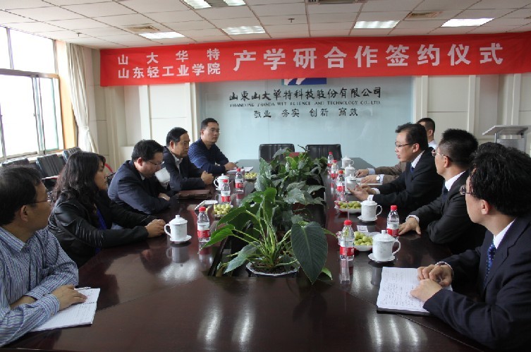 10月14日,山大華特與山東輕工業(yè)學(xué)院產(chǎn)學(xué)研合作簽約儀式在公司四樓會(huì)議室舉行,山東輕工業(yè)學(xué)院校長(zhǎng)陳嘉川,公司董事長(zhǎng)張兆亮、總裁楊為清出席簽約儀式,會(huì)議由常務(wù)副總裁姚廣平主持。 董事長(zhǎng)張兆亮首先介紹了山大華特的發(fā)展歷程和近期的經(jīng)營(yíng)狀況,提出山大華特目前正處于歷史上最好的發(fā)展時(shí)期,希望雙方以產(chǎn)學(xué)研合作簽約為契機(jī),全方位發(fā)展山大華特和輕工業(yè)學(xué)院的合作關(guān)系,真正打造立足長(zhǎng)遠(yuǎn),互利雙贏的產(chǎn)學(xué)研合作平臺(tái),促進(jìn)雙方的科技創(chuàng)新和持續(xù)發(fā)展。 輕工業(yè)學(xué)院陳嘉川校長(zhǎng)在講話中指出,山大華特自主研發(fā)的8噸/日二氧化氯制備裝置在日照華泰紙業(yè)制漿漂白生產(chǎn)線上的成功運(yùn)行,標(biāo)志著山大華特在該領(lǐng)域已經(jīng)處于國(guó)內(nèi)領(lǐng)先地位,必將推動(dòng)中國(guó)造紙產(chǎn)業(yè)結(jié)構(gòu)的升級(jí),這是華特的驕傲,也是中國(guó)造紙業(yè)的驕傲。制漿造紙工程是輕工學(xué)院的優(yōu)勢(shì)學(xué)科,擁有教育部和山東省共建重點(diǎn)實(shí)驗(yàn)室,研究水平在國(guó)內(nèi)領(lǐng)先。希望雙方在該領(lǐng)域的合作,能夠進(jìn)一步提升山大華特的市場(chǎng)競(jìng)爭(zhēng)優(yōu)勢(shì),為中國(guó)造紙業(yè)的發(fā)展作出更大的貢獻(xiàn)。 為進(jìn)一步充分發(fā)揮雙方相關(guān)專業(yè)人才的作用,培養(yǎng)優(yōu)秀的造紙漂白行業(yè)人才,雙方啟動(dòng)了人才培養(yǎng)和技術(shù)對(duì)接工作,山東輕工業(yè)學(xué)院特聘山大華特環(huán)保科技事業(yè)部總工程師王炳富為客座教授,陳校長(zhǎng)為王炳富頒發(fā)了聘任證書(shū)。 山東輕工業(yè)學(xué)院輕化與環(huán)境工程學(xué)院院長(zhǎng)趙傳山、科技處副處長(zhǎng)陳洪娟,公司副總裁喬永軍、總裁助理、環(huán)??萍际聵I(yè)部總經(jīng)理呂世鵬及環(huán)??萍际聵I(yè)部有關(guān)人員出席了簽約儀式。