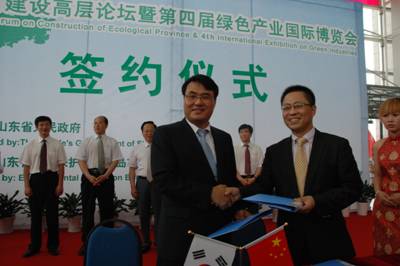 7月3日上午,公司與韓國韓國(株)CFTech Inc.公司燒結(jié)機(jī)尾氣處理設(shè)施及技術(shù)合作簽約儀式在青島國際會(huì)展中心舉行。國家環(huán)境保護(hù)部總工萬本太、韓國環(huán)境部次官文廷虎、山東省副省長李兆前、山東省環(huán)保廳廳長張波、副廳長徐剛等領(lǐng)導(dǎo)出席了簽字儀式。公司總裁楊為清與韓國(株)CFTech Inc.公司社長鄭仝奎在合作文本上簽字。